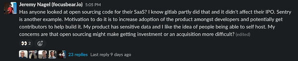 Every week, 3300+ founders are chatting in our free Slack community. Here is a glimpse into one of the conversations happening last week.